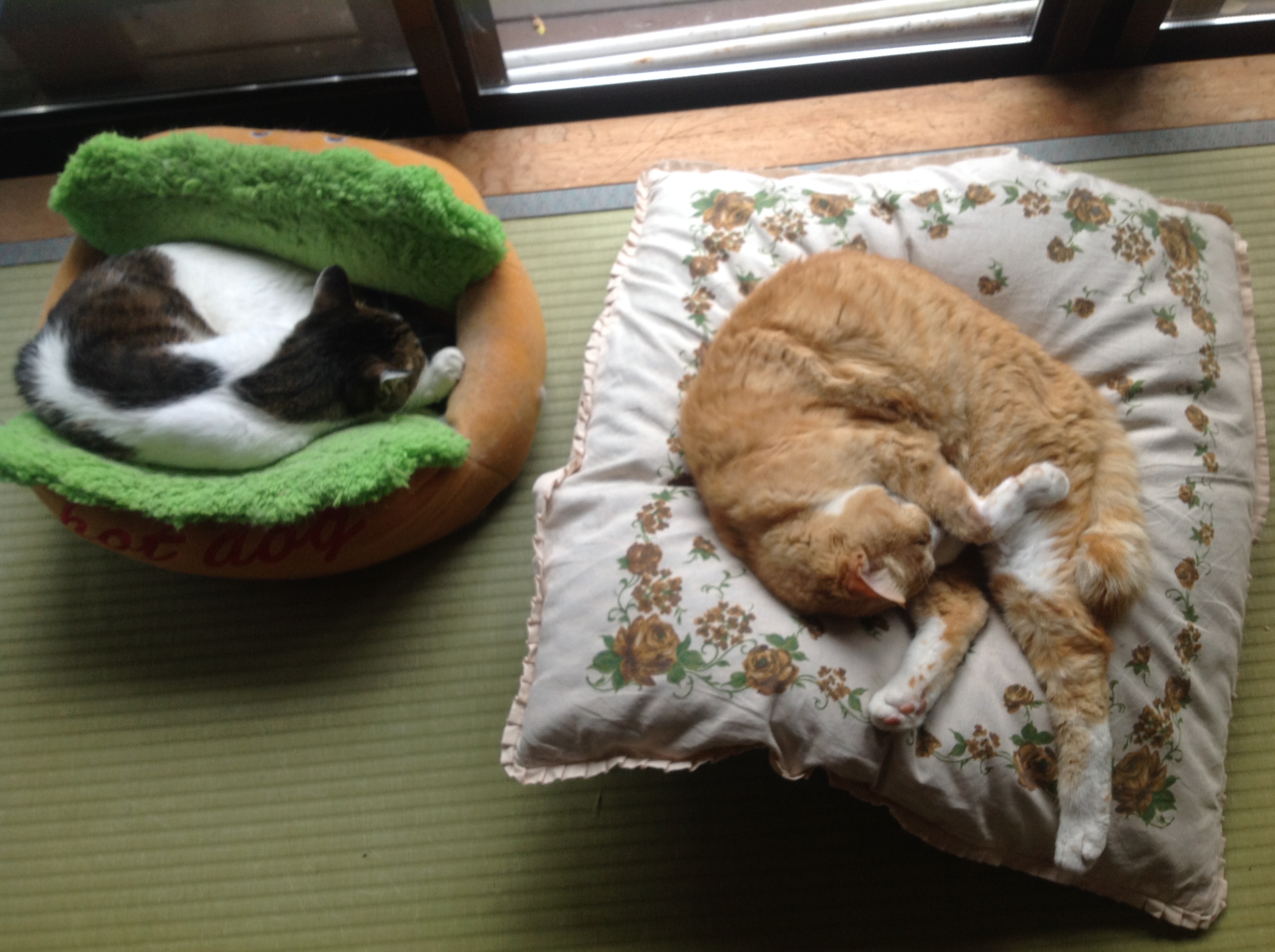 昨日の暴風雨からぐっと涼しくなり、猫も気持ちよさげに寝ています。