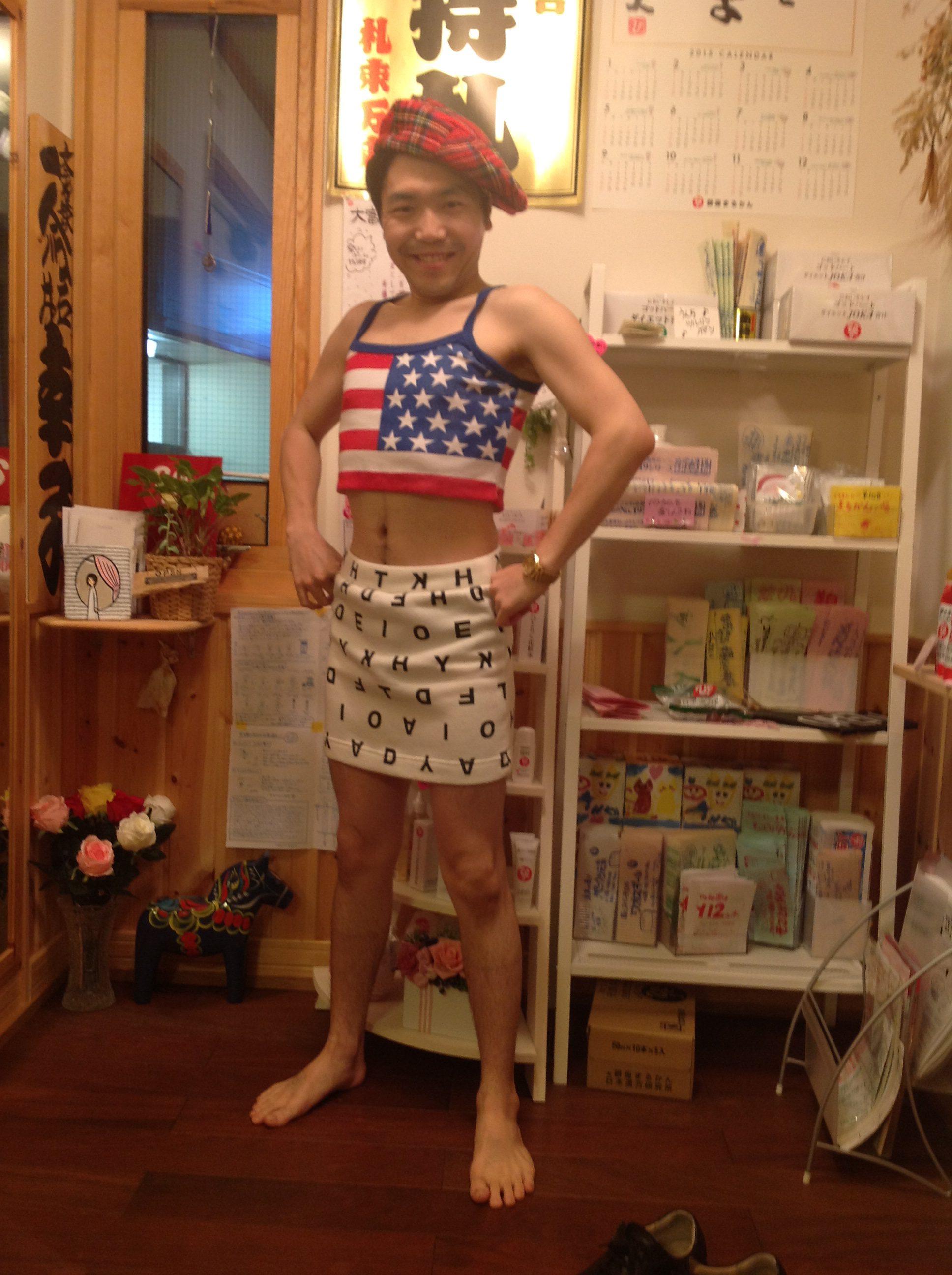 このカーディガンと半ズボンは、じゃんけんでゲットしました、