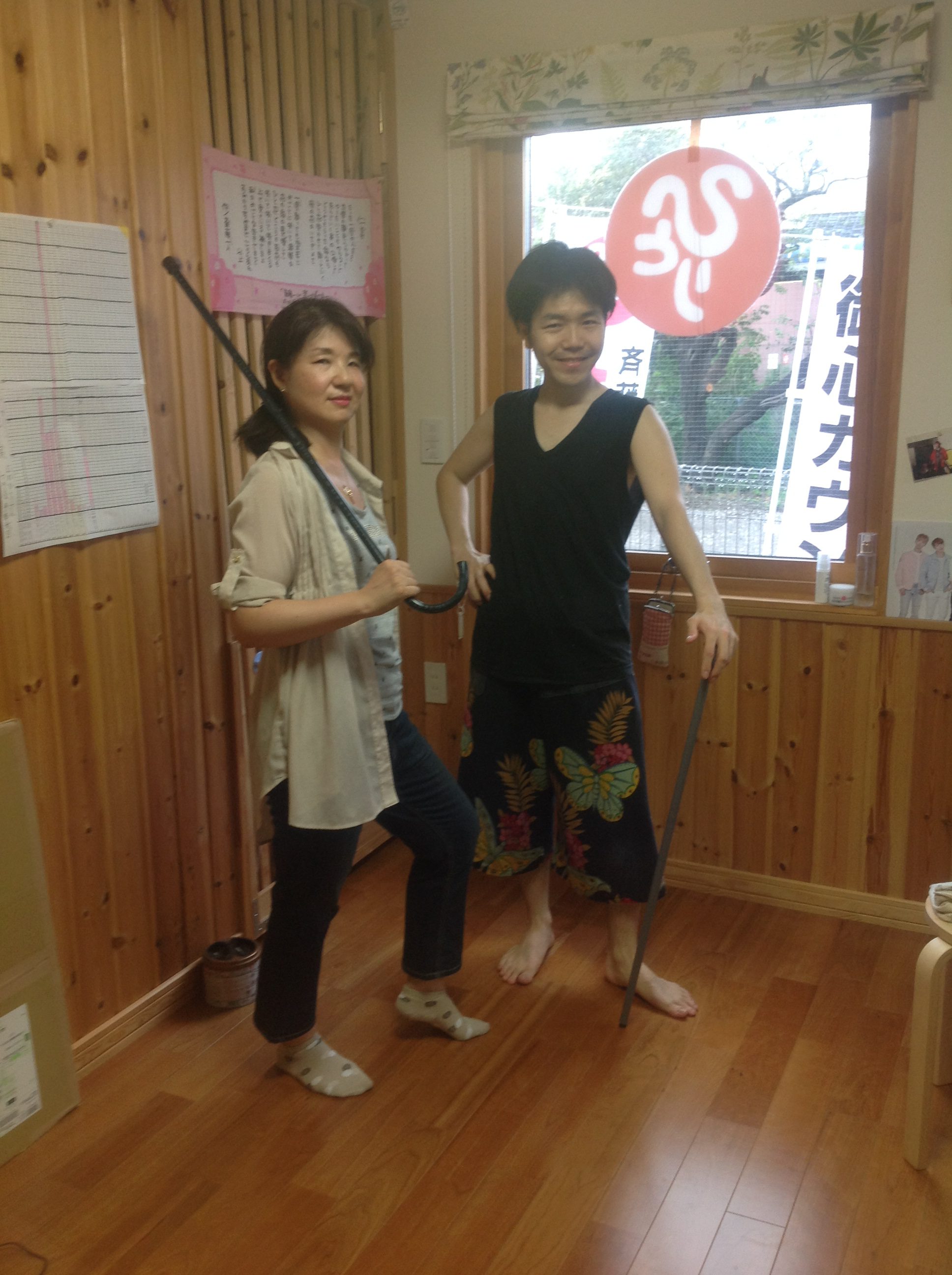 これまた、難しいよ〜〜〜、踊れるようになるでしょうか?この杖は息子が作りました。