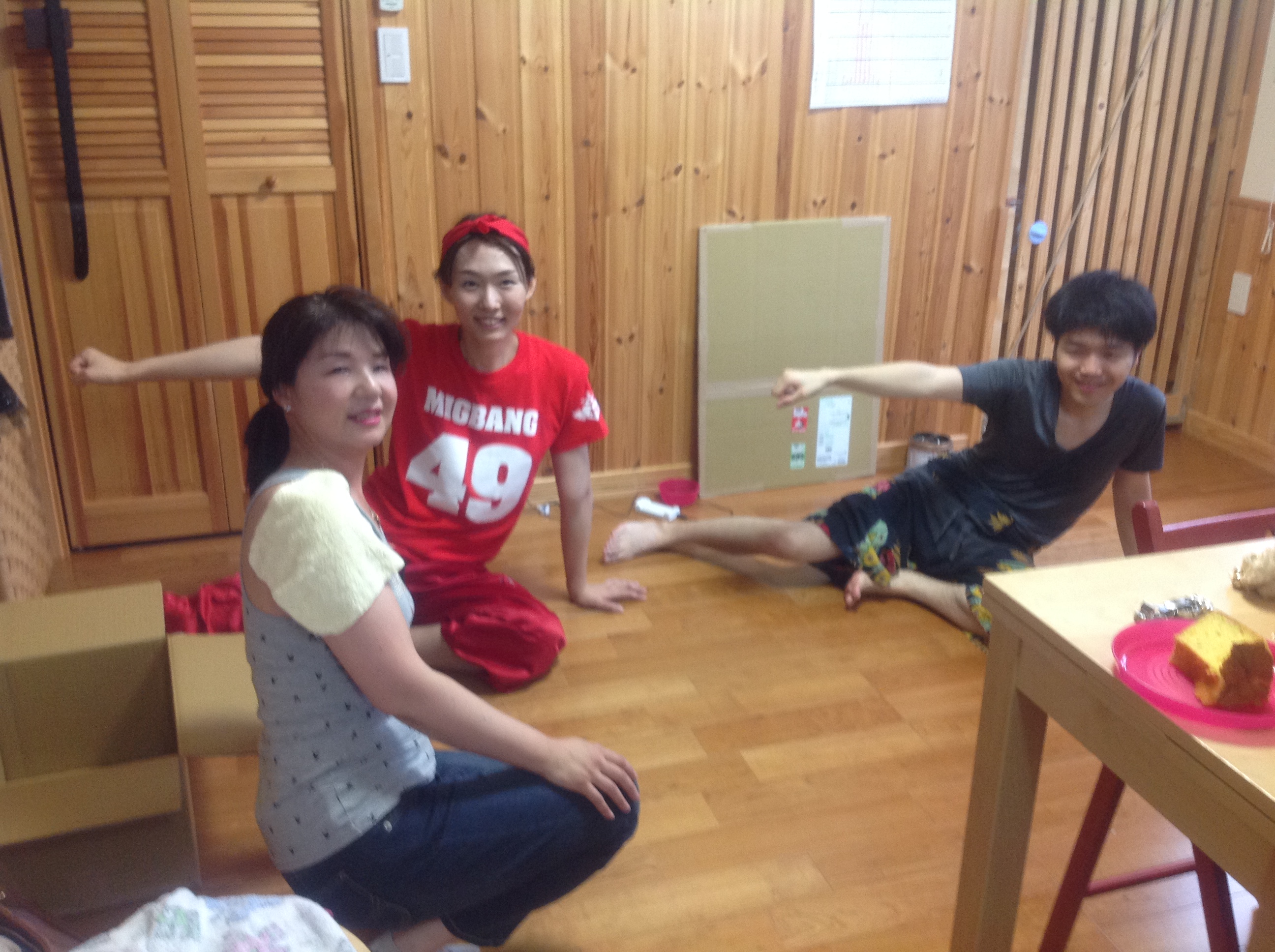 そのあと、余興の練習です。今回は少ない人数で踊るので、ちょっとかっこよく踊れたらいいなって思って、りかじろう先生の特訓が始まりました。みんな汗びっしょりです。りかじろう先生はダンスもきれきれで上手ですが、教え方も上手です。